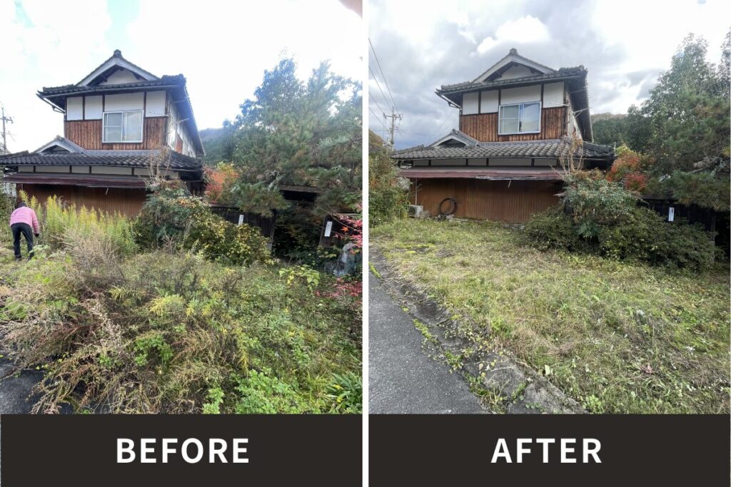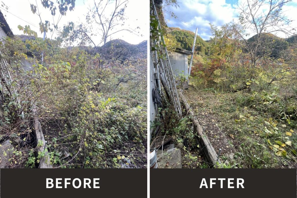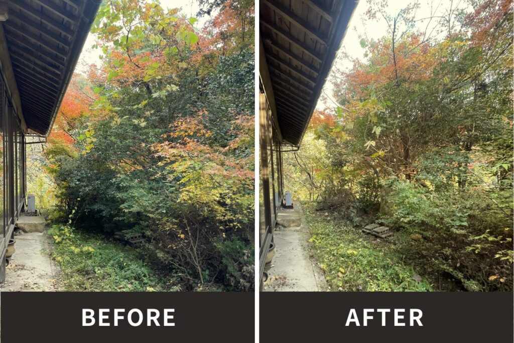 - 荒れた庭も4時間の作業で家の周りを歩けるようになった!